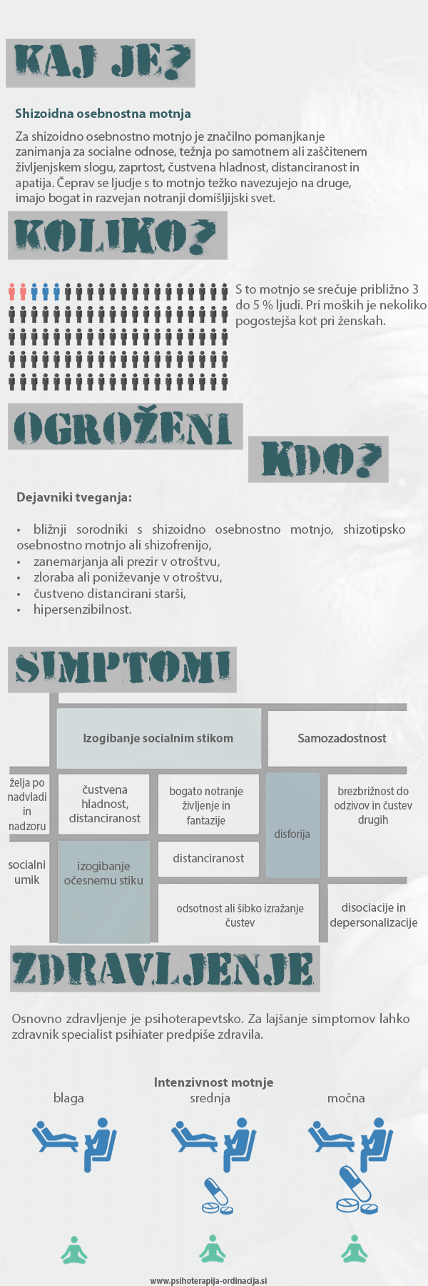 · roditelj ali sorodniki s shizoidno osebnostno motnjo, shizotipsko osebnostno motnjo ali shizofrenijo,